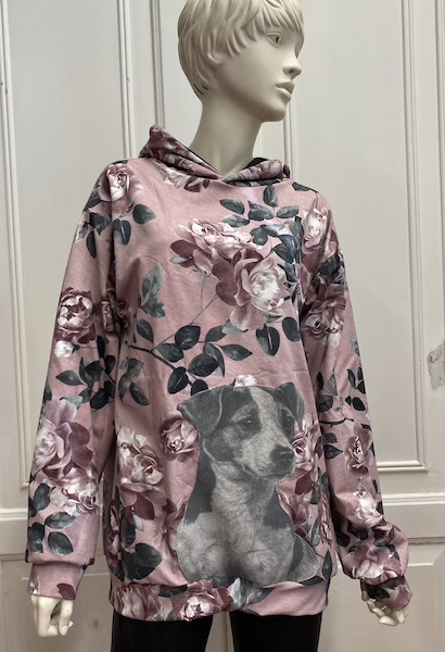 Herrantiete miten suloinen! Romanttisia ruusuja ja ihastuttava koira. Kerrassaan hurmaava kombinaatio, sitä ei käy kiistäminen kissaihmisenkään. Epämukavan mallinen kesämekko toimii huomattavasti paremmin hupparimuodossa ja ikivanhasta lempipaidasta napattu koirio sopii ruusutarhaan kuin sammakko lampeen. Ja sammakoista puheen ollen, tämän herkullisen hurmaavan rönsyn vuorimateriaalina toimii riemastuttava, superpehmoinen sammakkotrikoo. Kenties juuri sinä kirmaat iltalenkille oman karvaisen ystäväsi kera tähän Rönsyyn sonnustautuneena?