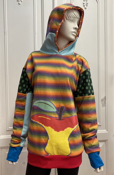 Tässä Rönsyssä on kesä. Sellainen pitkään kypsynyt lapsuuden kesä, jolloin luonto on ylikypsä, värit taittavat jo murrettuihin sävyihin ja syksy hengittelee ihan lähellä, mutta koulujen alkuun on vielä viikko ja helle makaa maiseman päällä kuin untuvatäkki. Sellainen loppukesän kellertävä iltapäivä, kun omenat alkavat jo punertaa puissa ja lihavat kärpäset surisevat unettavasti korvanjuuressa, kun makaat viltillä selaamassa koirankorville luettuja Aku Ankkoja. Jos sellainen kesähetki konkretisoituisi vaatemuotoon, se olisi tämä Rönsy. En tiedä miksi, siinä vain on sellainen boogie. Koko on S ja vuorimateriaalina maailman pehmoisin sammakkotrikoo.